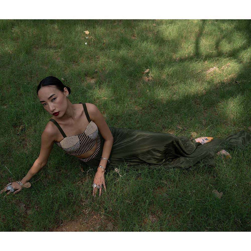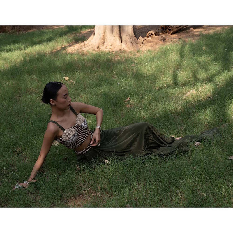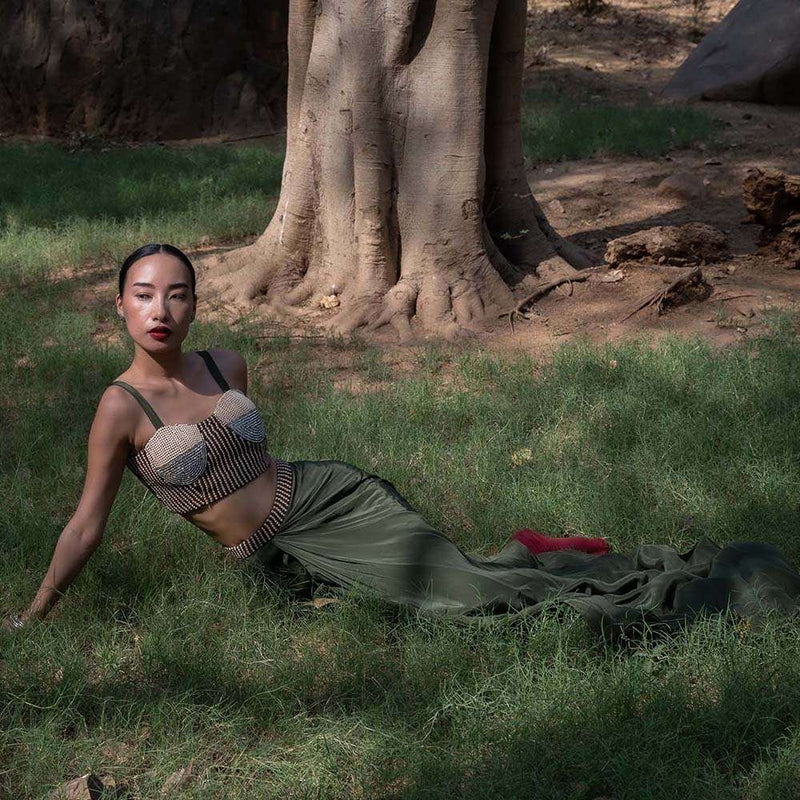 Amka India Green Amla Embellished Crop Top and Skirt (Set of 2)