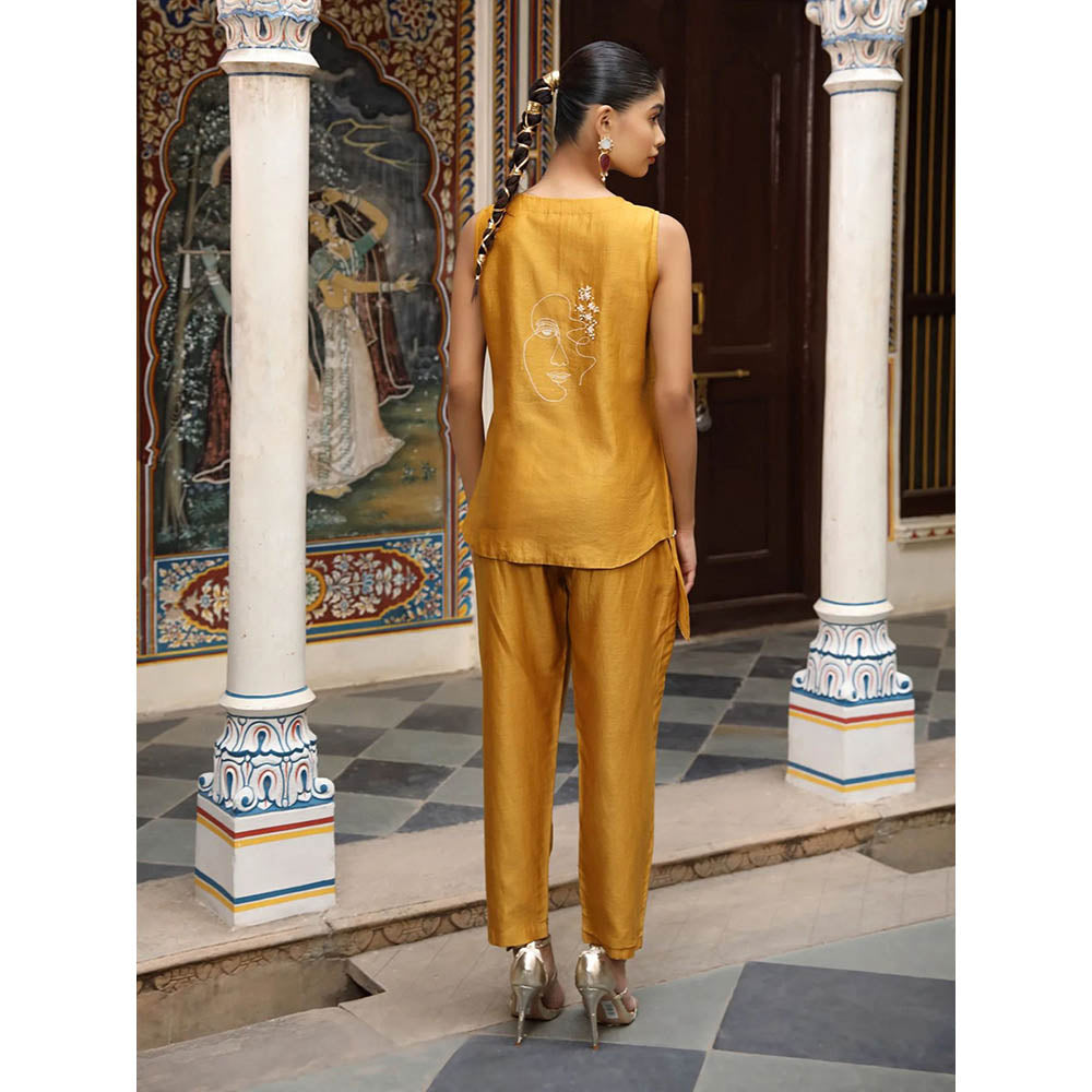 Amoree Mustard Sleeveless with Thread and Sequin Embroidery Co-Ord (Set of 2)