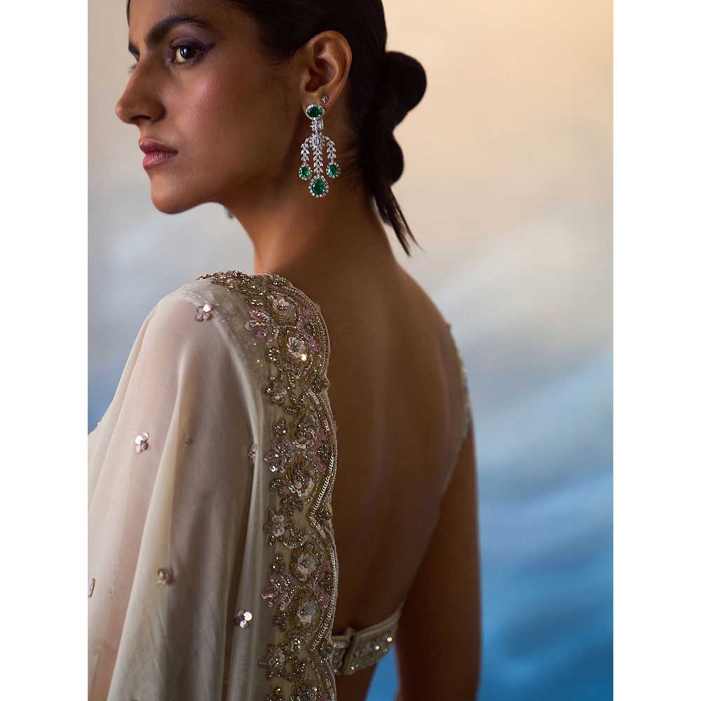 ANGAD SINGH Ivory Gear Saree with Stitched Blouse and Petticoat