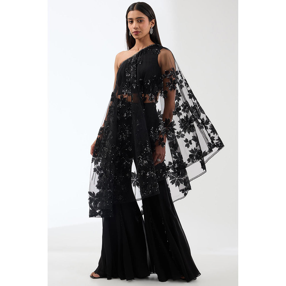 Anjali Kanwar Black Embellished/Sequined Cape Top with Flared Pant (Set of 2)