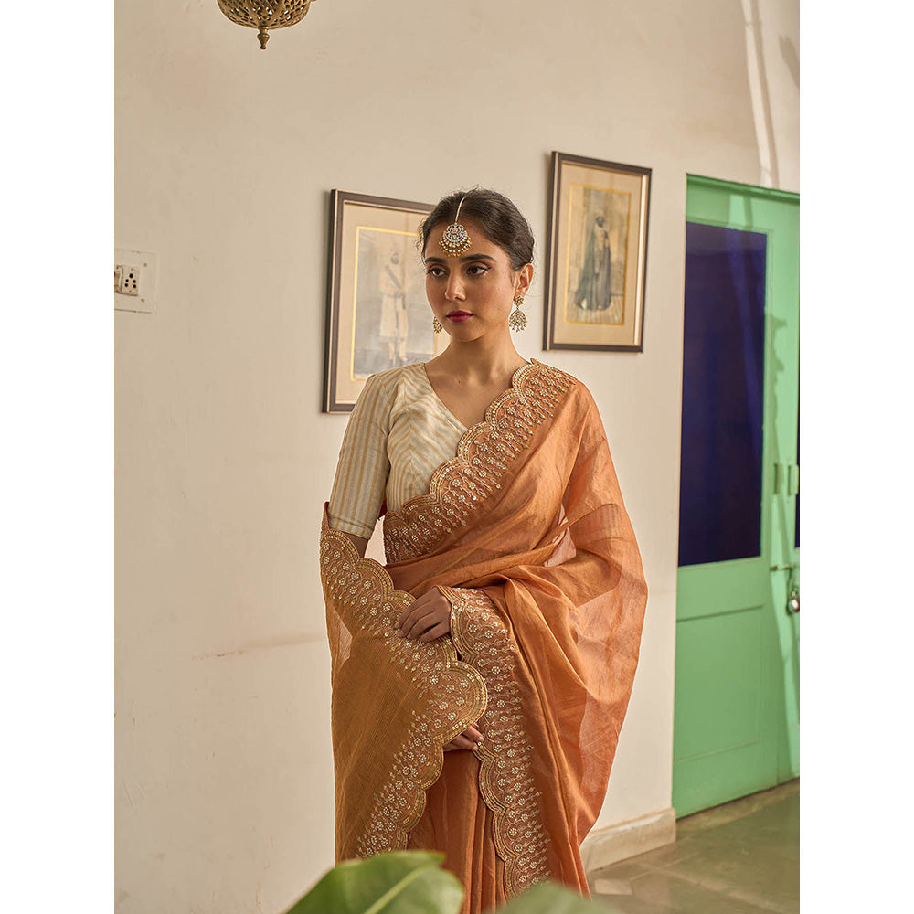 Apeksha Jain Label Brown Sunehra Tissue Saree with Stitched Blouse