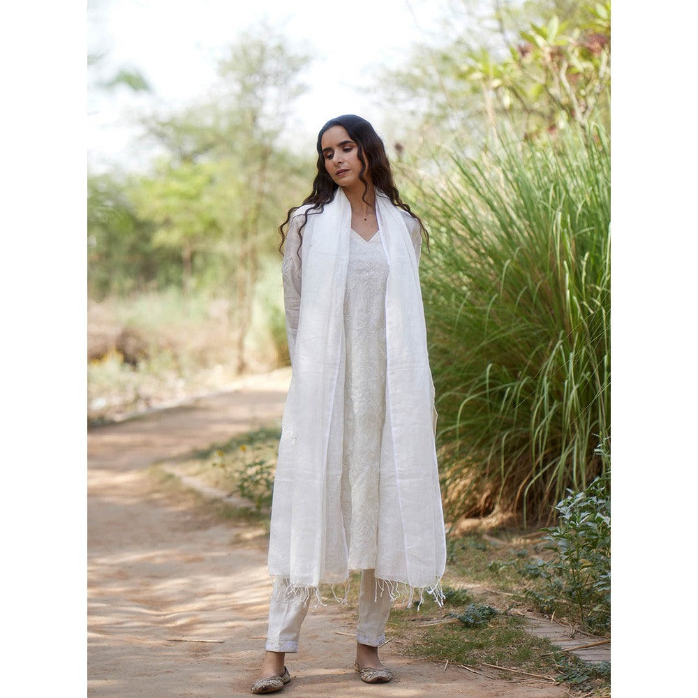 Ivory Kurta with Pant and Dupatta (Set of 3)