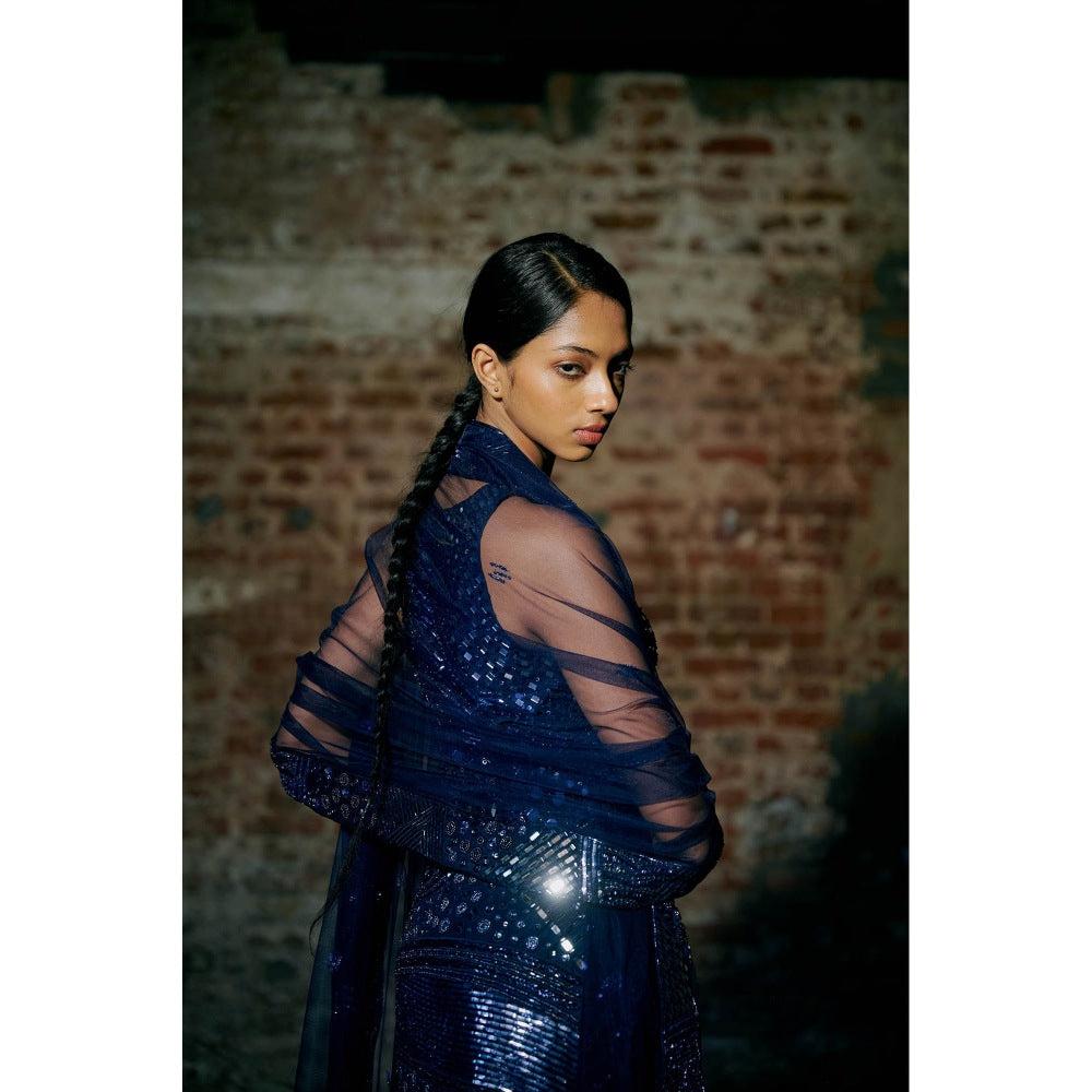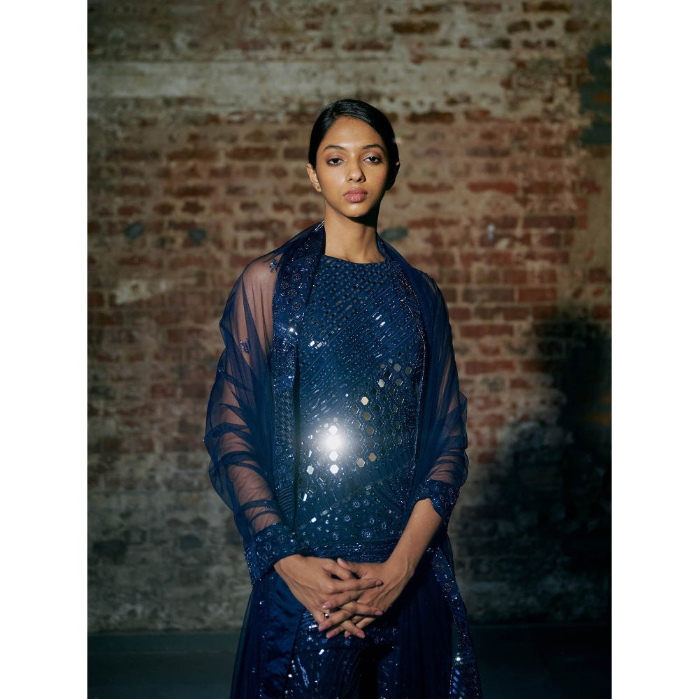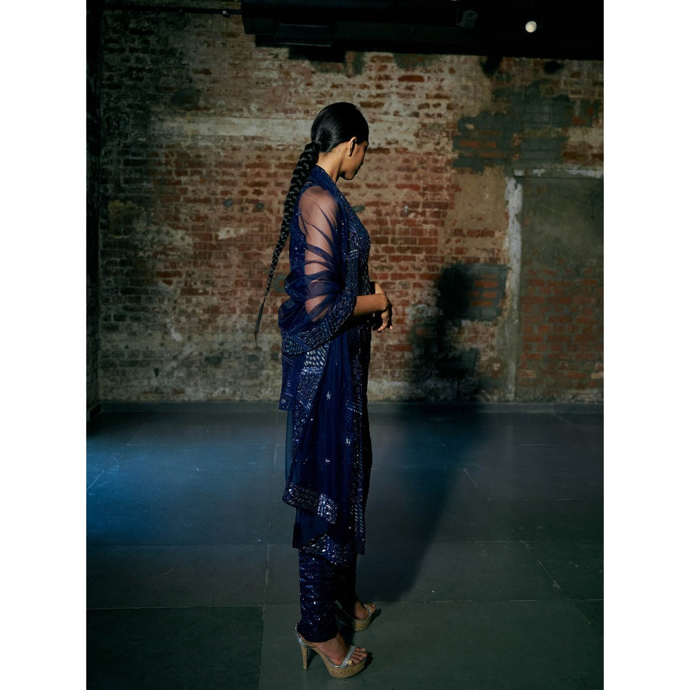 Asaga Stream Navy Blue Kurta with Pant and Dupatta (Set of 3)