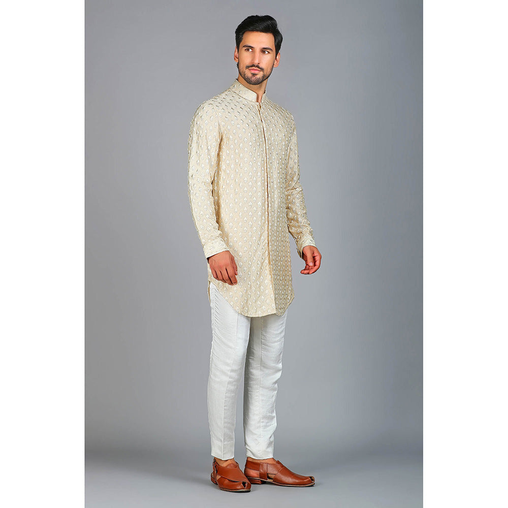 Beige Floral Motif Thread Embroidered Kurta