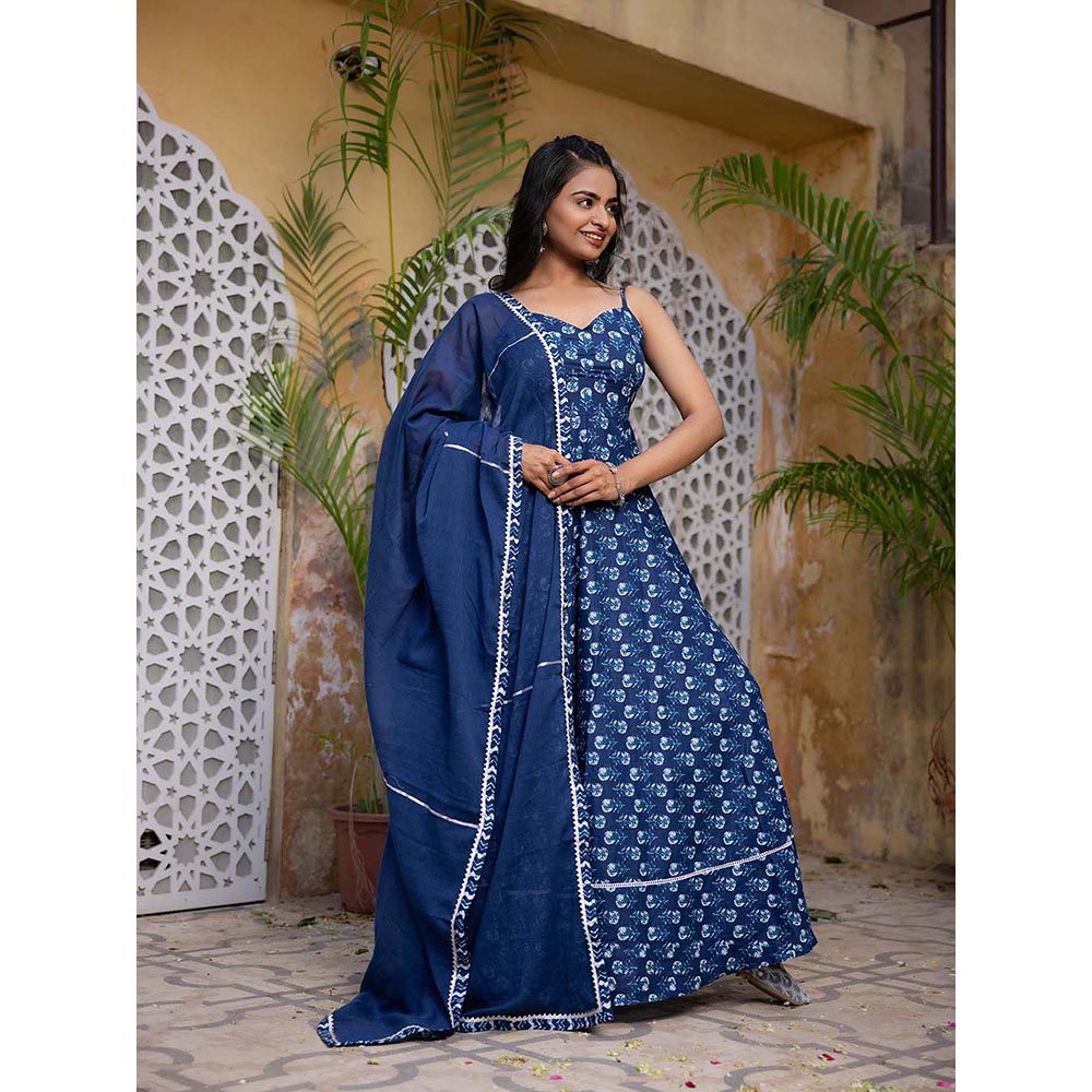 DEASHA INDIA Arna Blue Cotton Anarkali with Pant and Dupatta (Set of 3)
