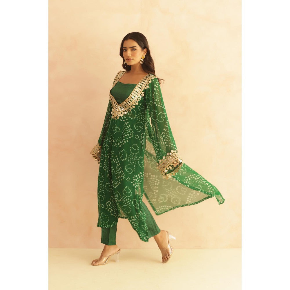 DEASHA INDIA Editha Green Bandhej Lace Work Bustier with Kurta & Pant