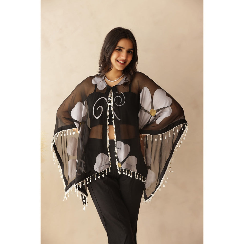Sakhi Black Hand Painted Cape with Blouse and Pant (Set of 3)