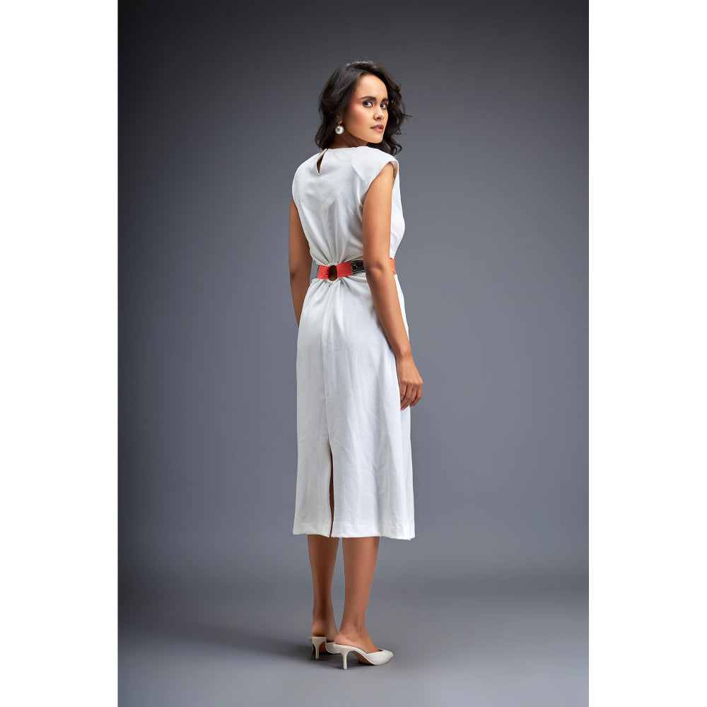 Description : Dress-up elegantly with this white dress, belt from Deepika Arora. Made from high-quality other, it features back closure closure and solid/plain pattern along with cap & round neck design. Pair it with heels to complete your ensemble.
