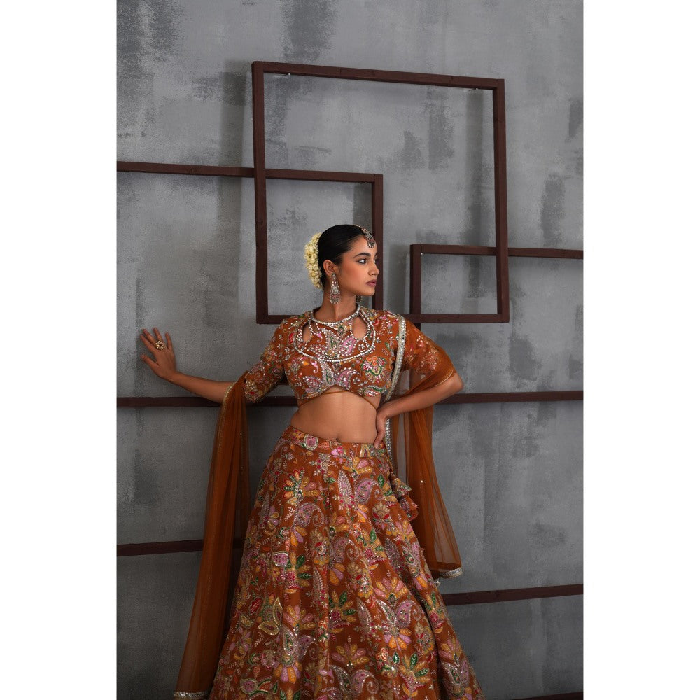 Deepika Chadha Orange Printed Blouse with Lehenga and Dupatta (Set of 3)