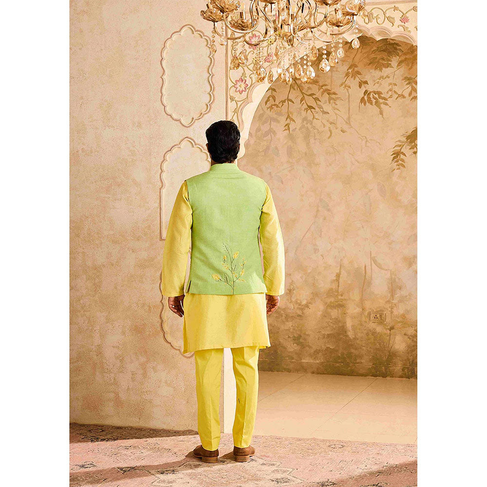HISTORI Yellow Floral Kurta with Jacket and Pant