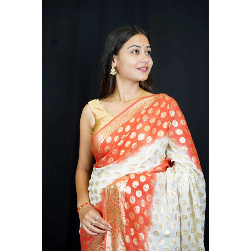 Description : Embrace timeless tradition with our exquisite white saree paired with an unstitched blouse piece, giving you the freedom to customize your perfect fit and style. Crafted from luxurious fabric of banarasi silk that flows effortlessly, this saree showcases intricate detailing and vibrant hues designed to turn heads at any celebration or festive occasion. The unstitched blouse lets you tailor the look exactly how you envision be it classic, contemporary, or somewhere in between. Whether draped for weddings, parties, or cultural events, this set promises grace, comfort, and endless styling possibilities.