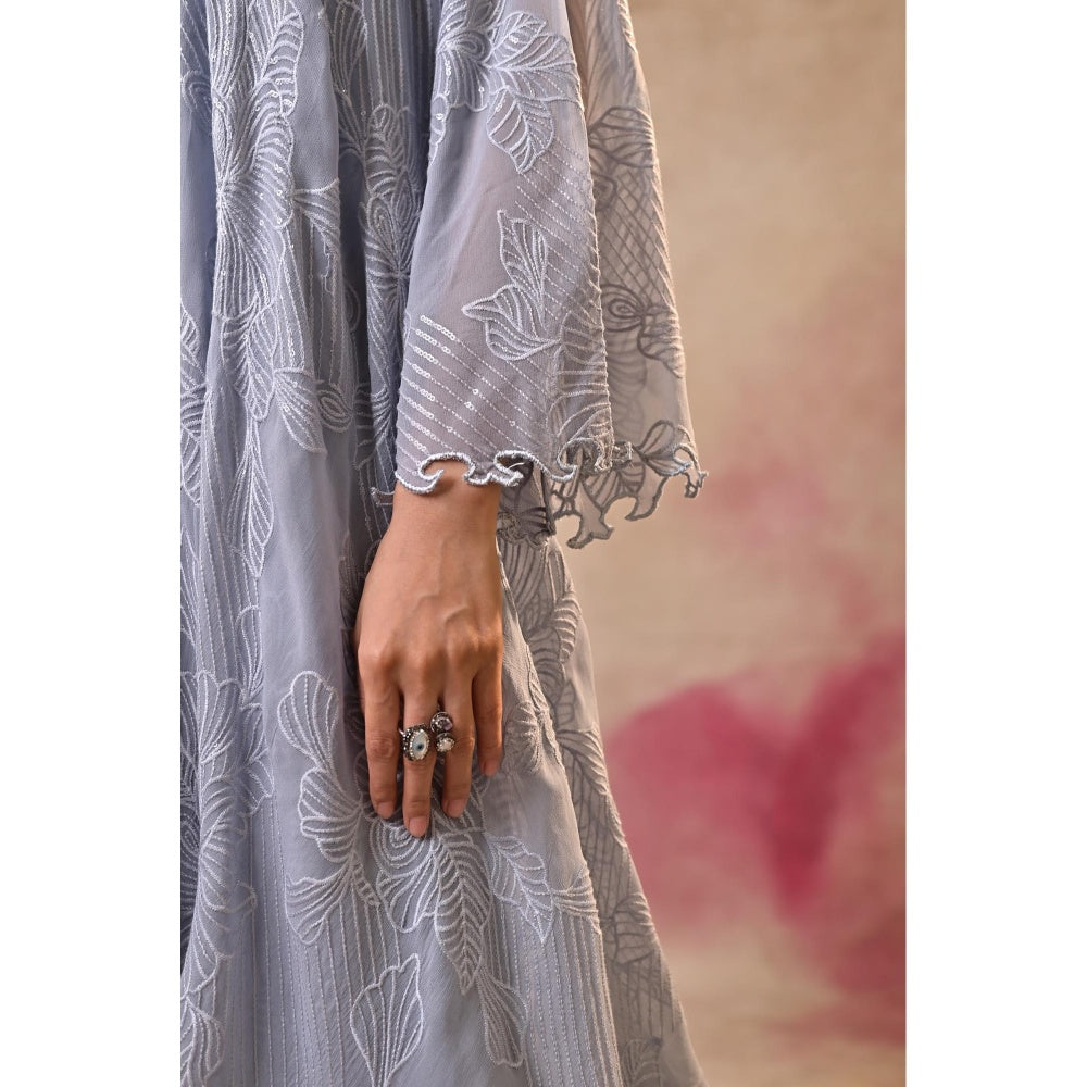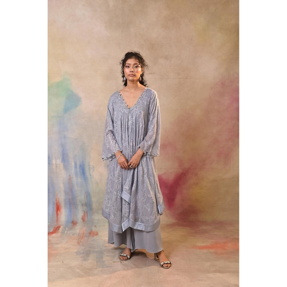 Jasashi Elegant Grey Embroidered Indo-Western Kurta with Palazzo (Set of 2)