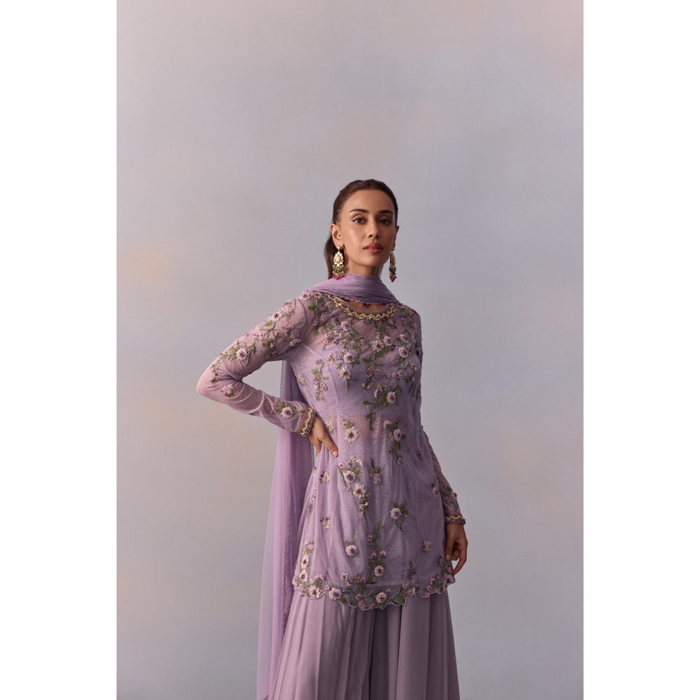 KALISTA Fidah Lavender Embellished Bustier with Sharara and Dupatta & Jacket (Set of 4)