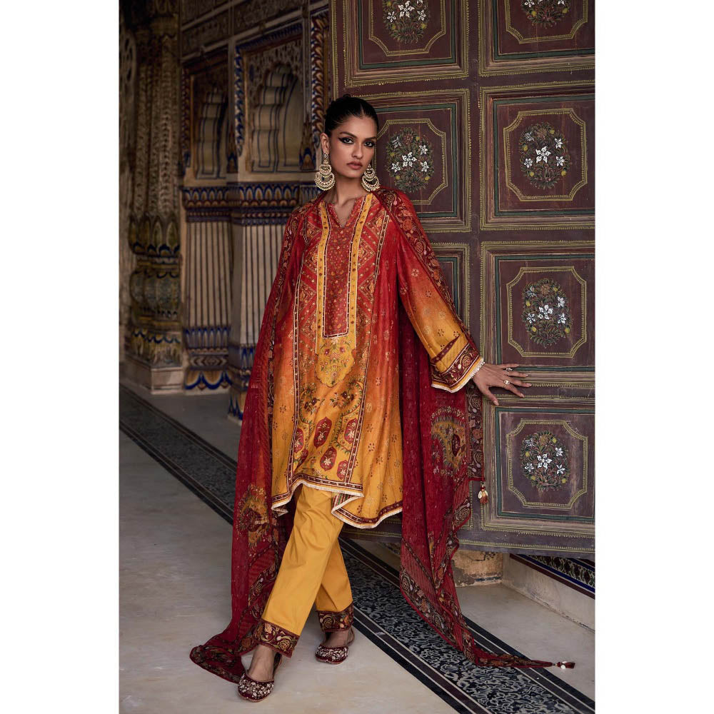 KALISTA Yellow Kaisha Kurta with Pant and Dupatta (Set of 3)