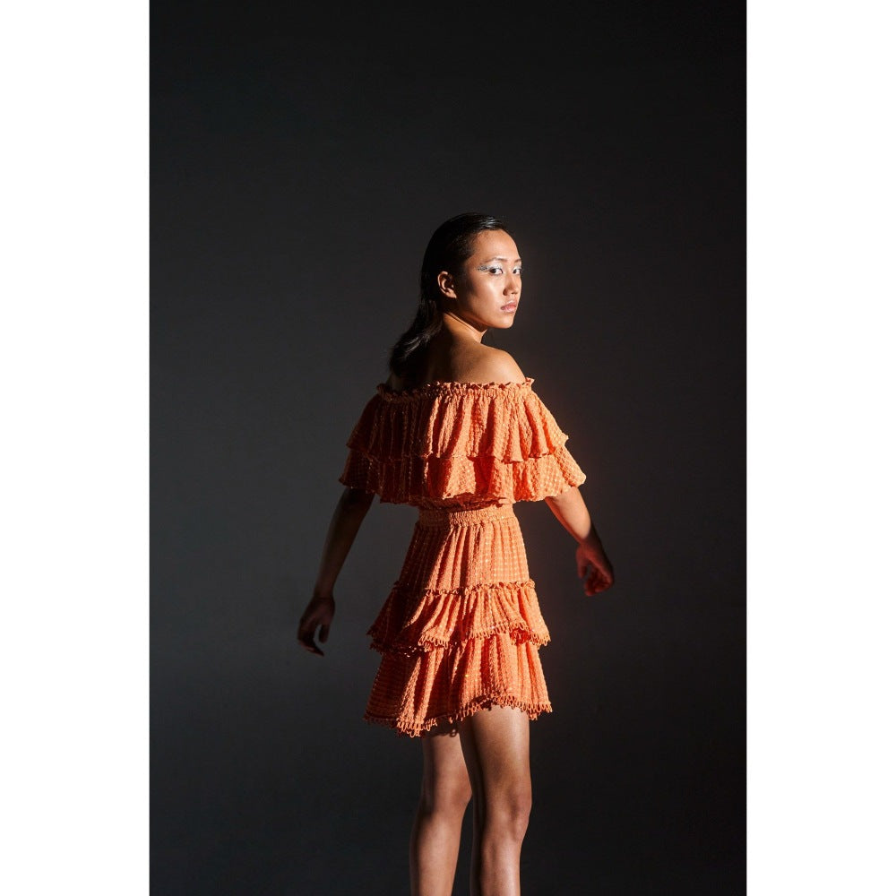 KANGANA TREHAN Orange Off-Shoulder Sequinned Ruffle Dress