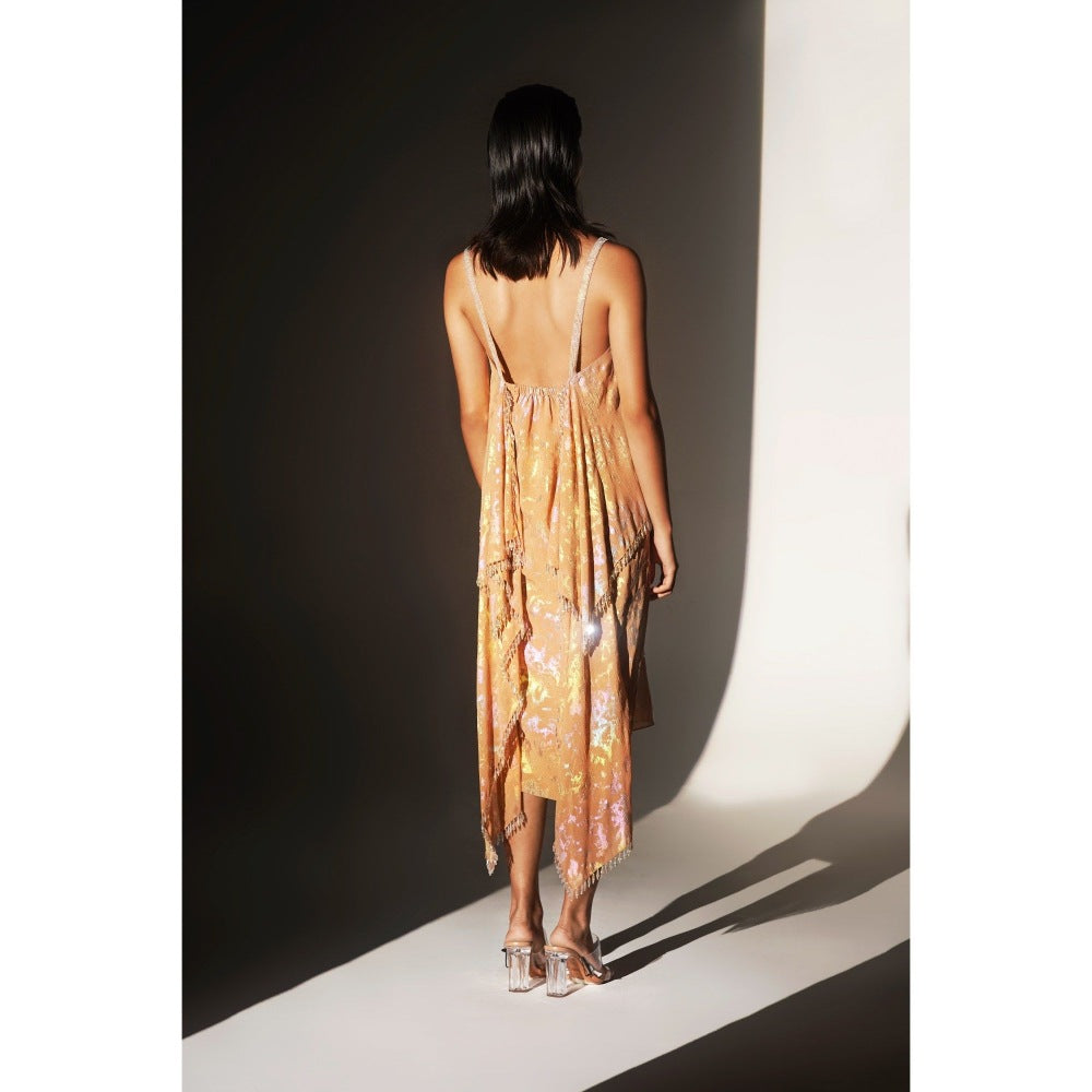 KANGANA TREHAN Peach Metallic Jacquard Chandelier Dress
