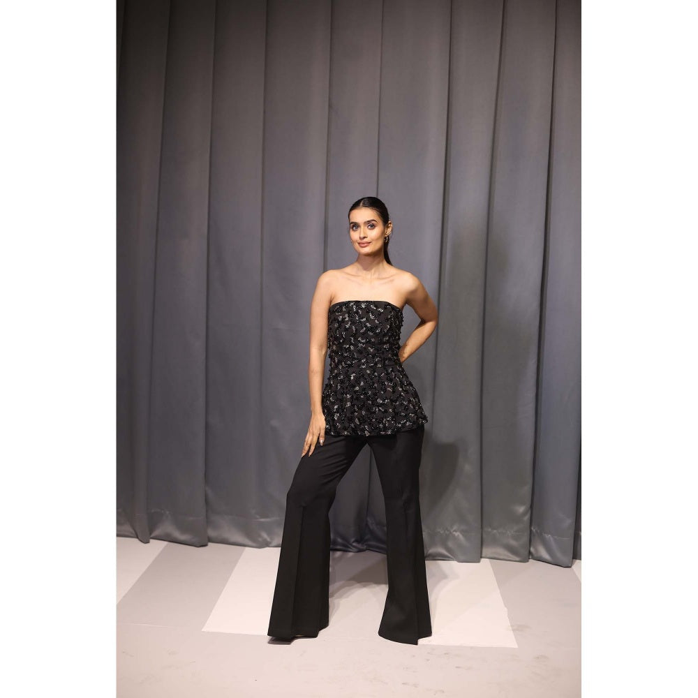 Kanika Verma Black Peplum Top with Pant (Set of 2)