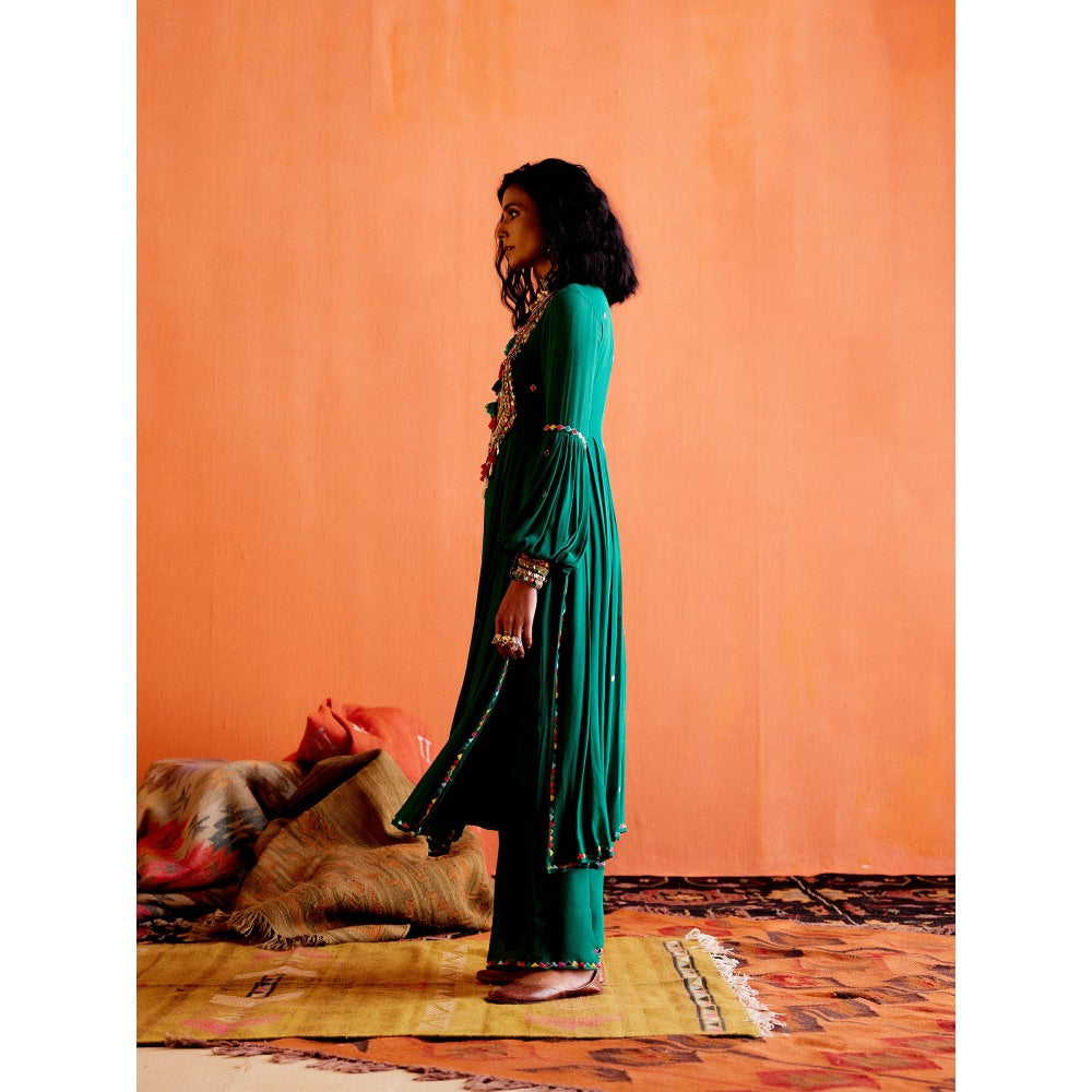 Karishma Khanduja Arshad Green Embellished Tassels Kurta with Pant (Set of 2)