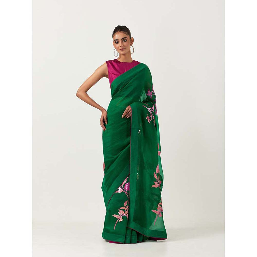 Label Earthen Harit Sundari Embellished Saree with Stitched Blouse