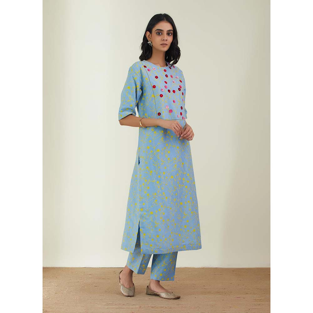 Label Earthen Women Blue Floral Kurta with Pant (Set of 2)