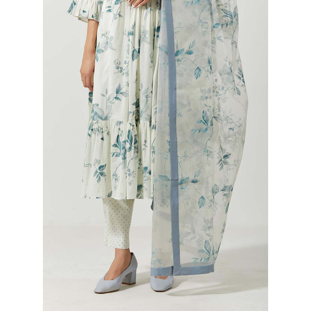 Label Earthen Women White Floral Anarkali Kurta with Pant & Dupatta (Set of 3)