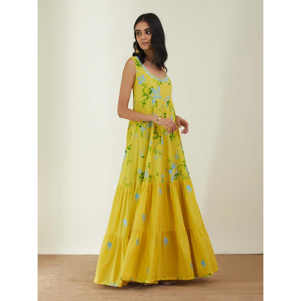 Description : Elevate your ethnic wear wardrobe with Label Earthen yellow maxi dress. It features floral pattern with sleeveless, scoop neck with . It is crafted from finest material. This outfit is perfect for special occasion. Add trendy footwear to complete the look.