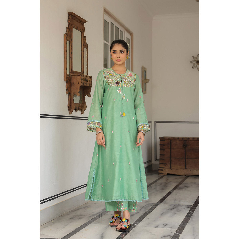 Green Gulzar Round Neck Embroidered Kurta and Pant (Set of 2)
