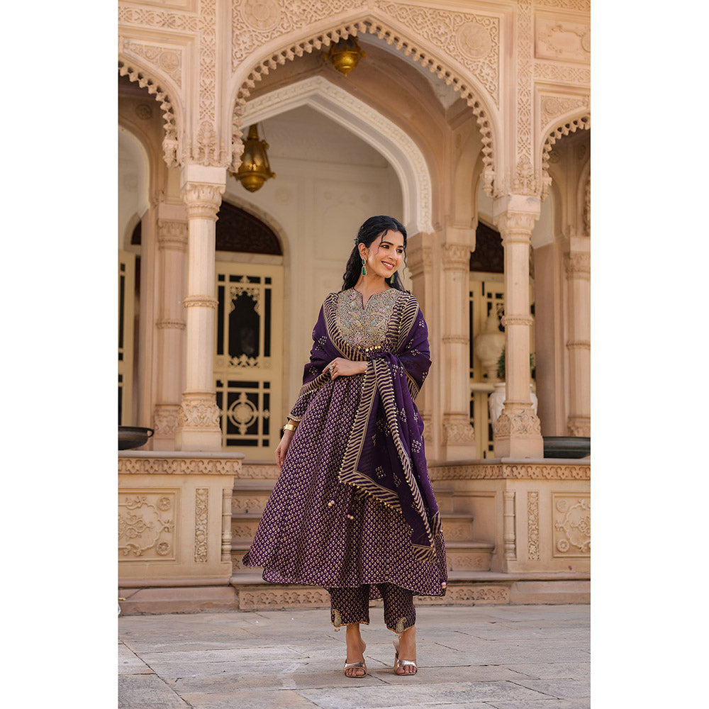 Purple Riwayat Printed Embroidered Kurta with Pant and Dupatta (Set of 3)