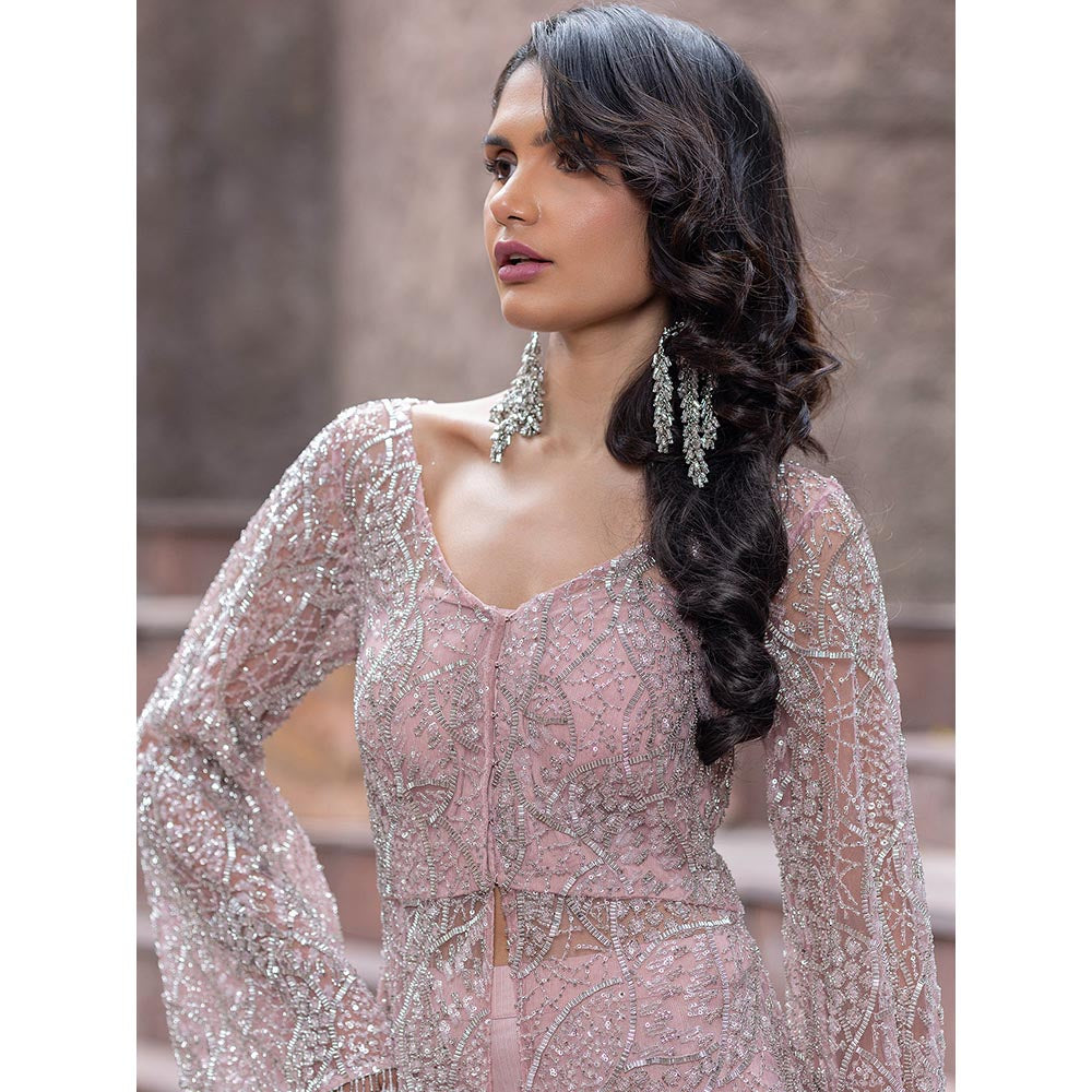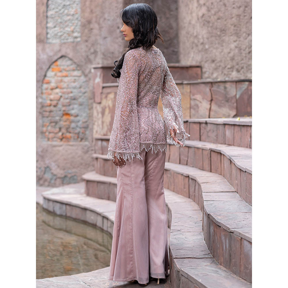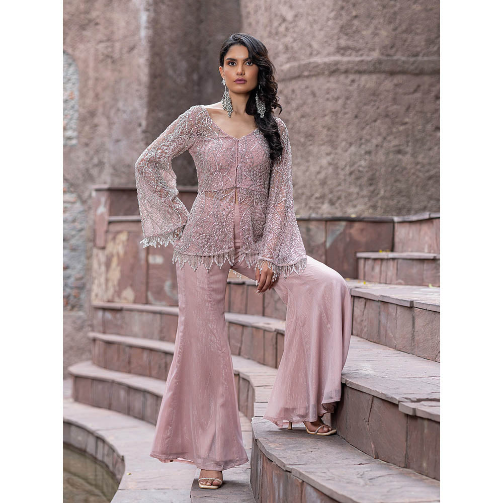 Description : Garner all the attention in this pink co-ord set from MABISH LUXE. Crafted from polyester, this alluring set is finished with bell sleeves and a v-neck. Team this set with a pair of heels and minimal jewellery.