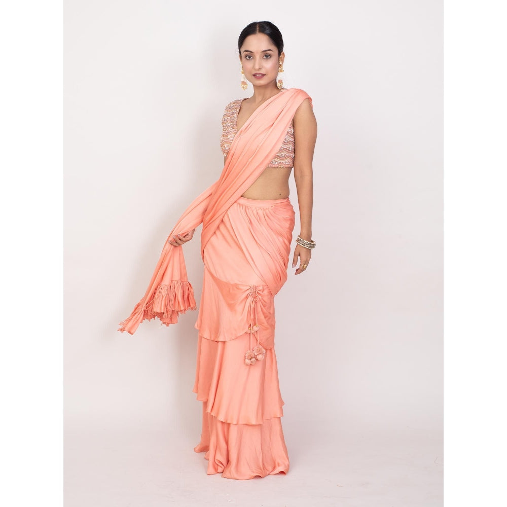 Monika Mathuria Datta Light Peach Pre-Drape Saree with Stitched Blouse