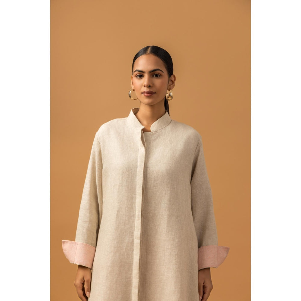 Naseebo Pearl Floral Trail Linen Premium Kurta with Pant - Beige
