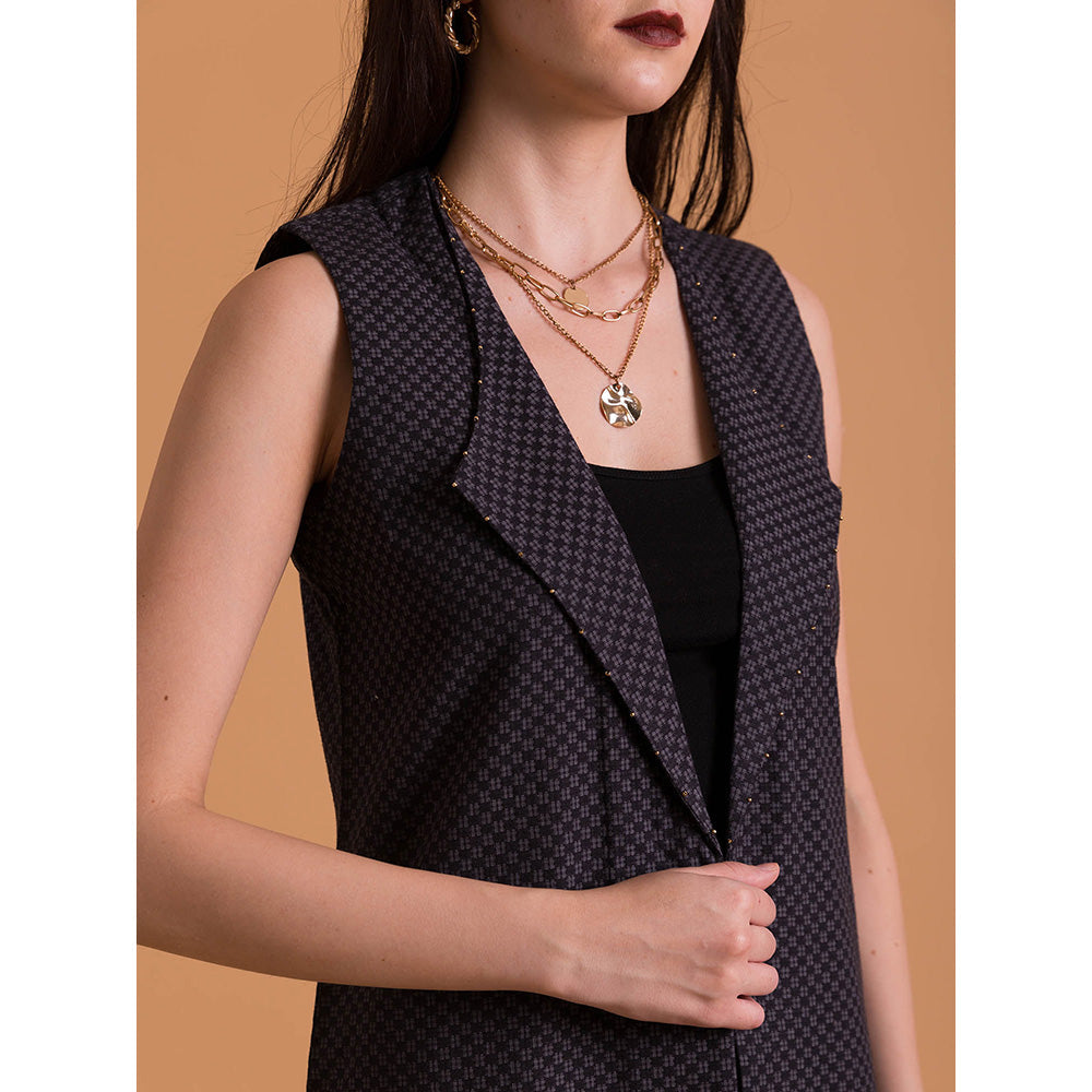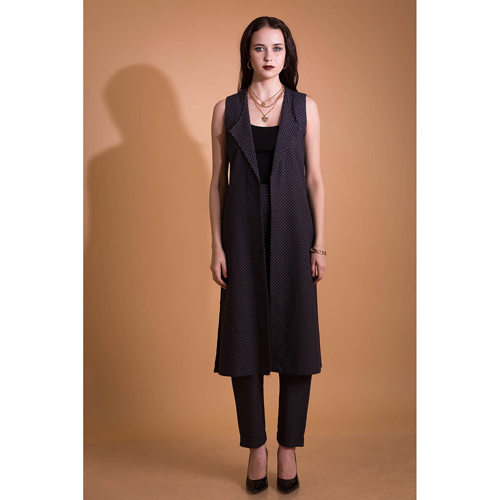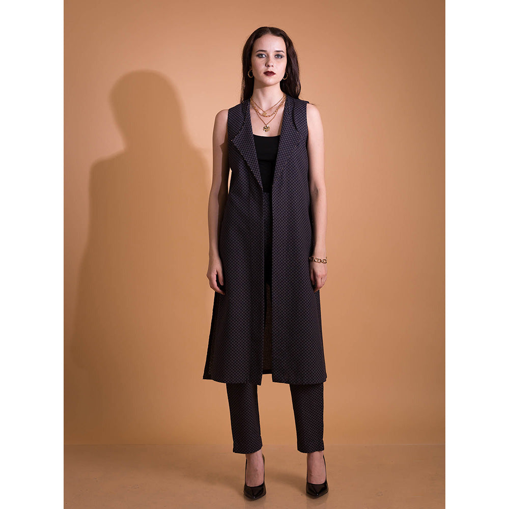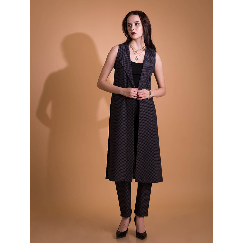 Description : All you need to look gorgeous in this black jacket pant from ORCR. It is crafted from high-quality fabric. It features black checks jacket pant which has half sleeves, round neck style. This outfit is perfect for any festive or special occasion.