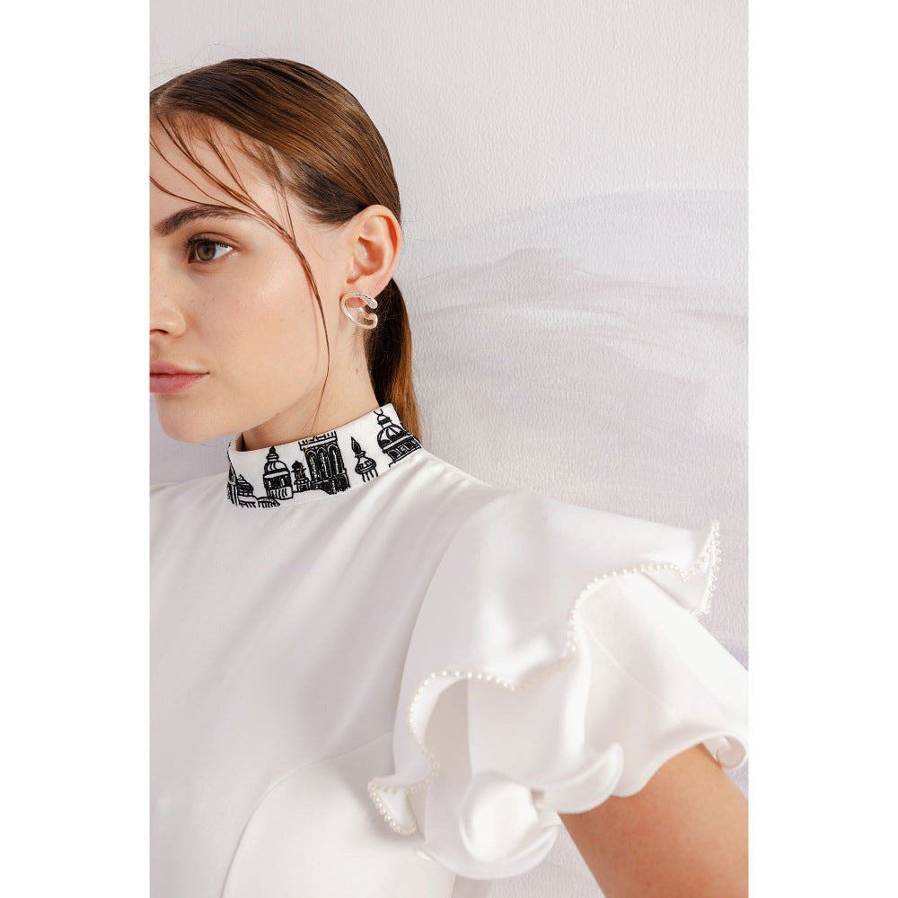 Orthodox White Imperial Flare Toga Bodysuit with Sleeves