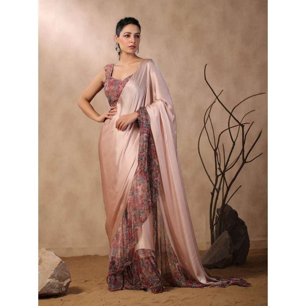 Description : Pink Saree with Printed Ruffles