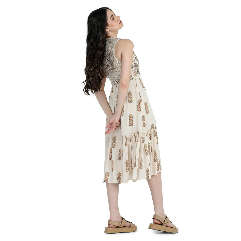 Description : Elevate your style with this white bone crepe tie n dye embroidered short dress from Pinnacle By Shruti Sancheti. Made from high-quality viscose, this piece features a sleeveless design and a round neck. Style it with minimal jewellery and sandals to complete the ensemble.