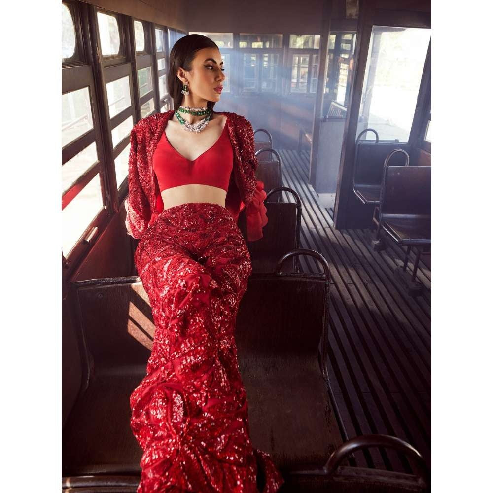 Genesis Red Jacket with Pant and Blouse (Set of 3)