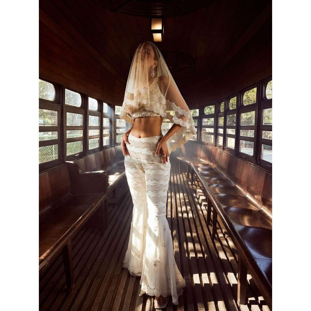 Rococo Labyrinth Ivory Top with Sharara and Cape (Set of 3)