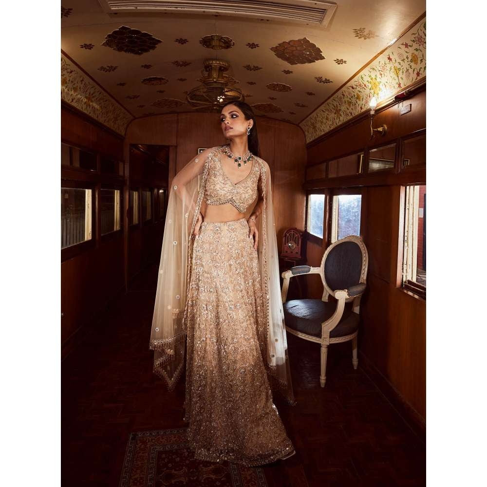 Rococo Pinnacle Beige Lehenga with Blouse and Dupatta (Set of 3)