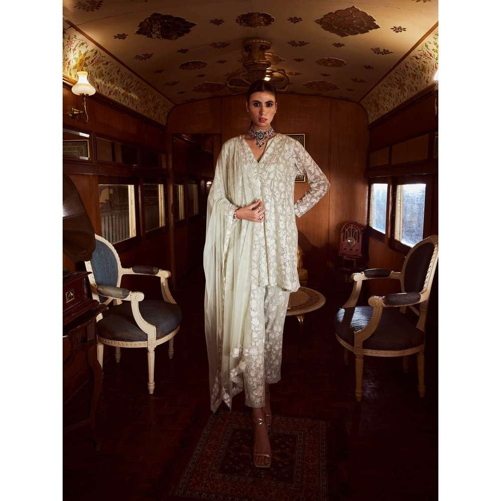 Rococo Zenith Mint Green Kurta with Pant and Dupatta (Set of 3)