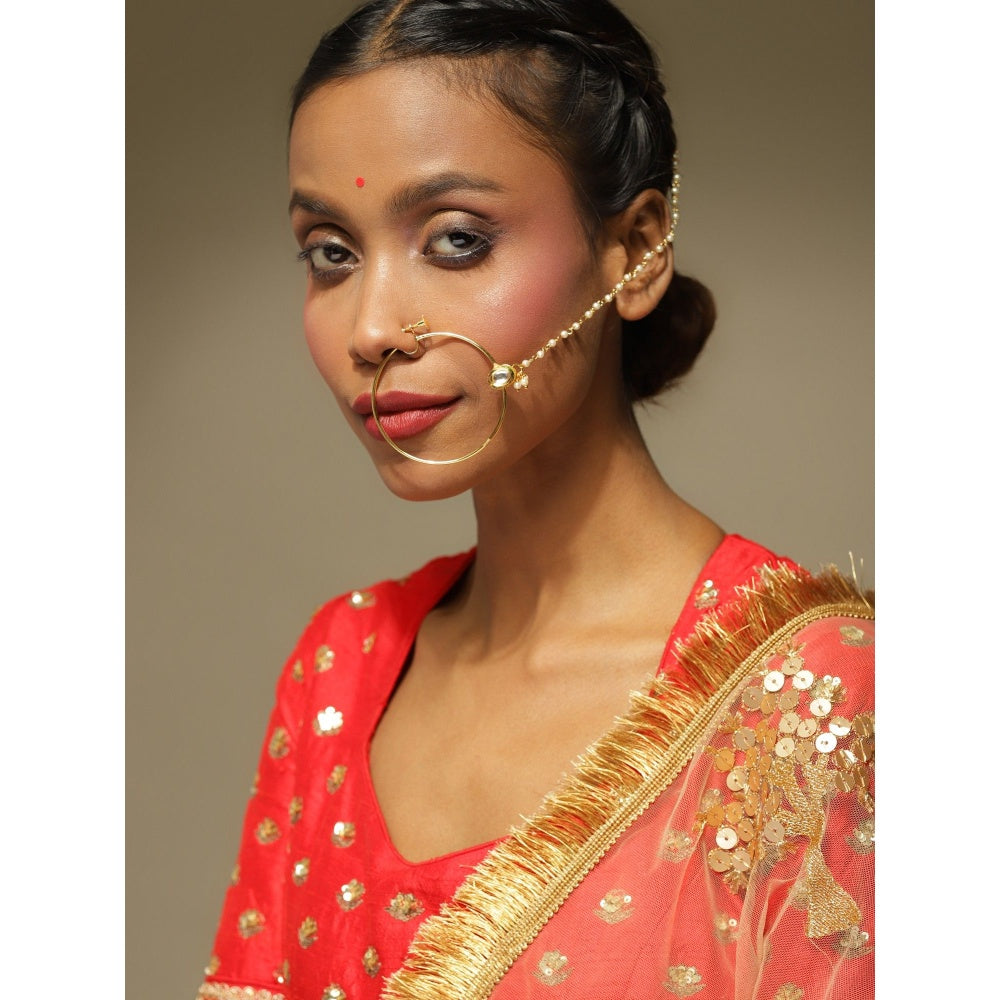 Ruby Raang Studio Gold-Toned & White Kundan Nath