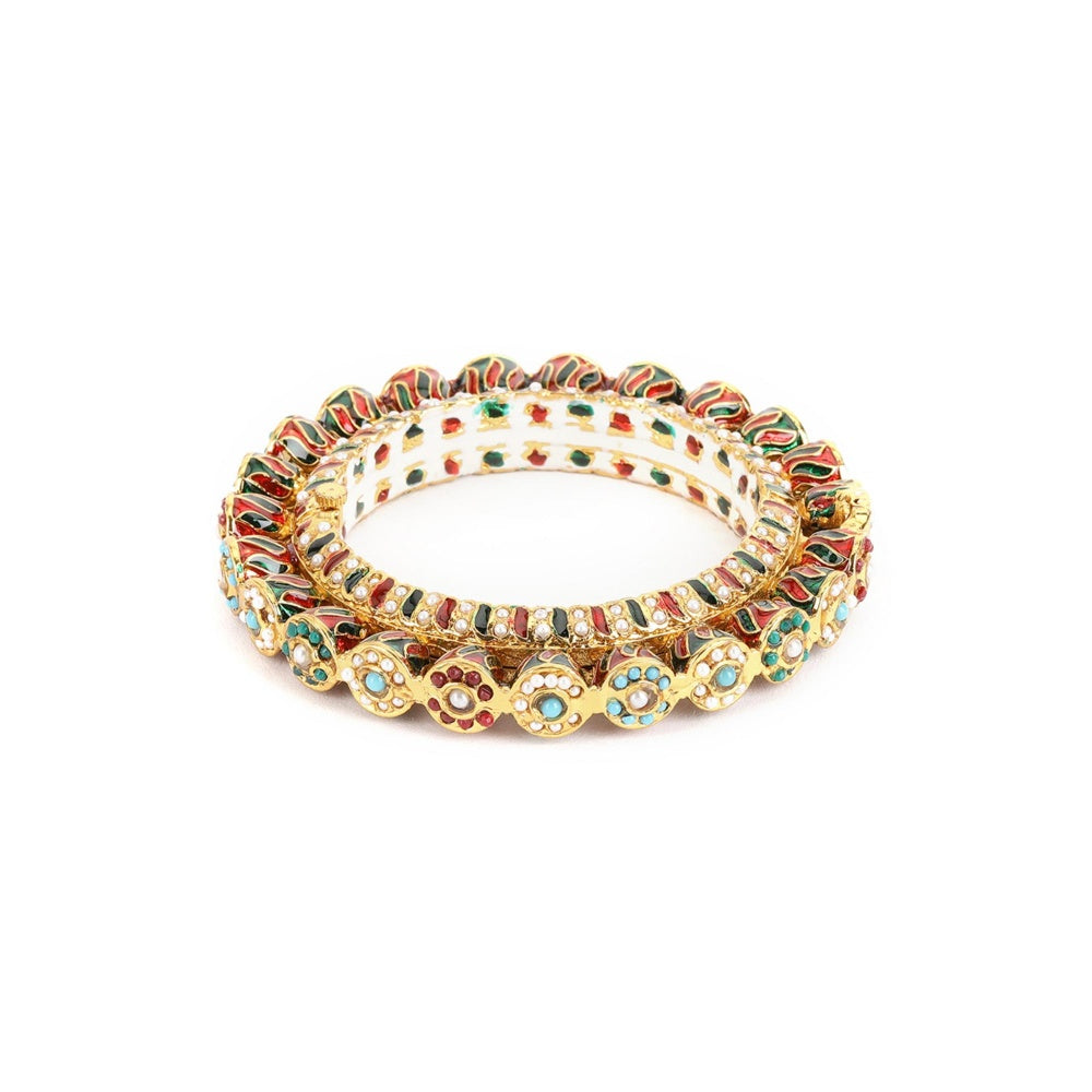 Ruby Raang Studio Handcrafted Heavy Bangles Green and Blue, White (Set of 2)