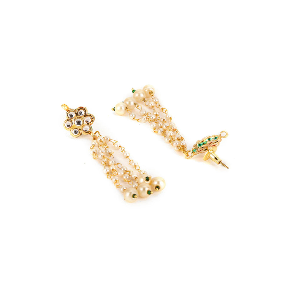 Ruby Raang Studio Long Dangler Kundan and Pearl Earrings