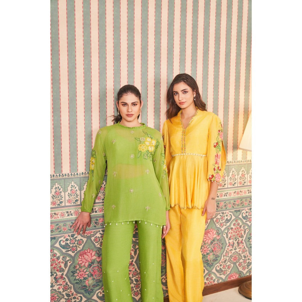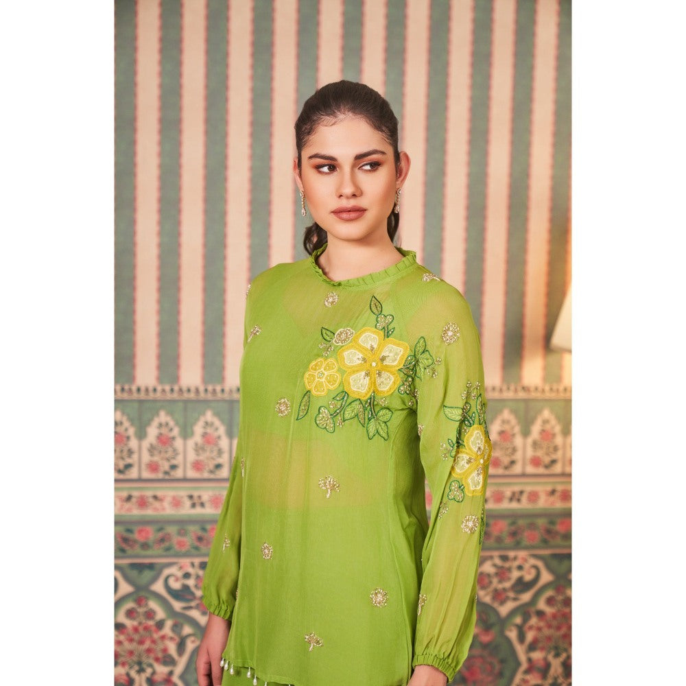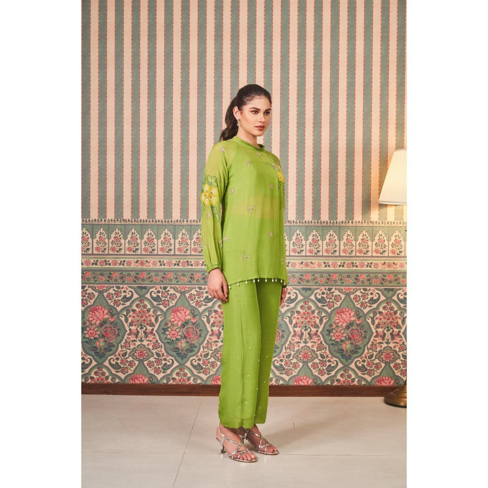 SAMMOHI BY MOKSHA & HIRAL Green Applique Hand Embroidery Co-Ord (Set of 2)