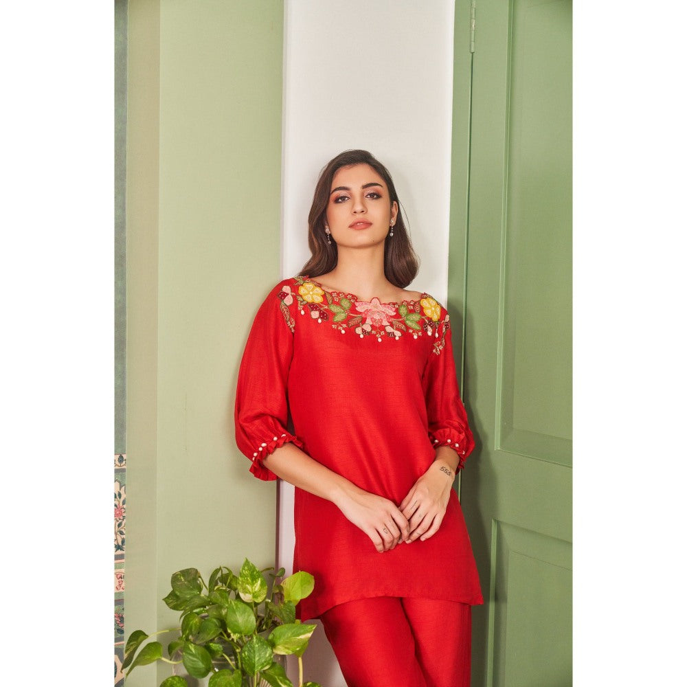 Red Applique Hand Embellishments Co-Ord (Set of 2)