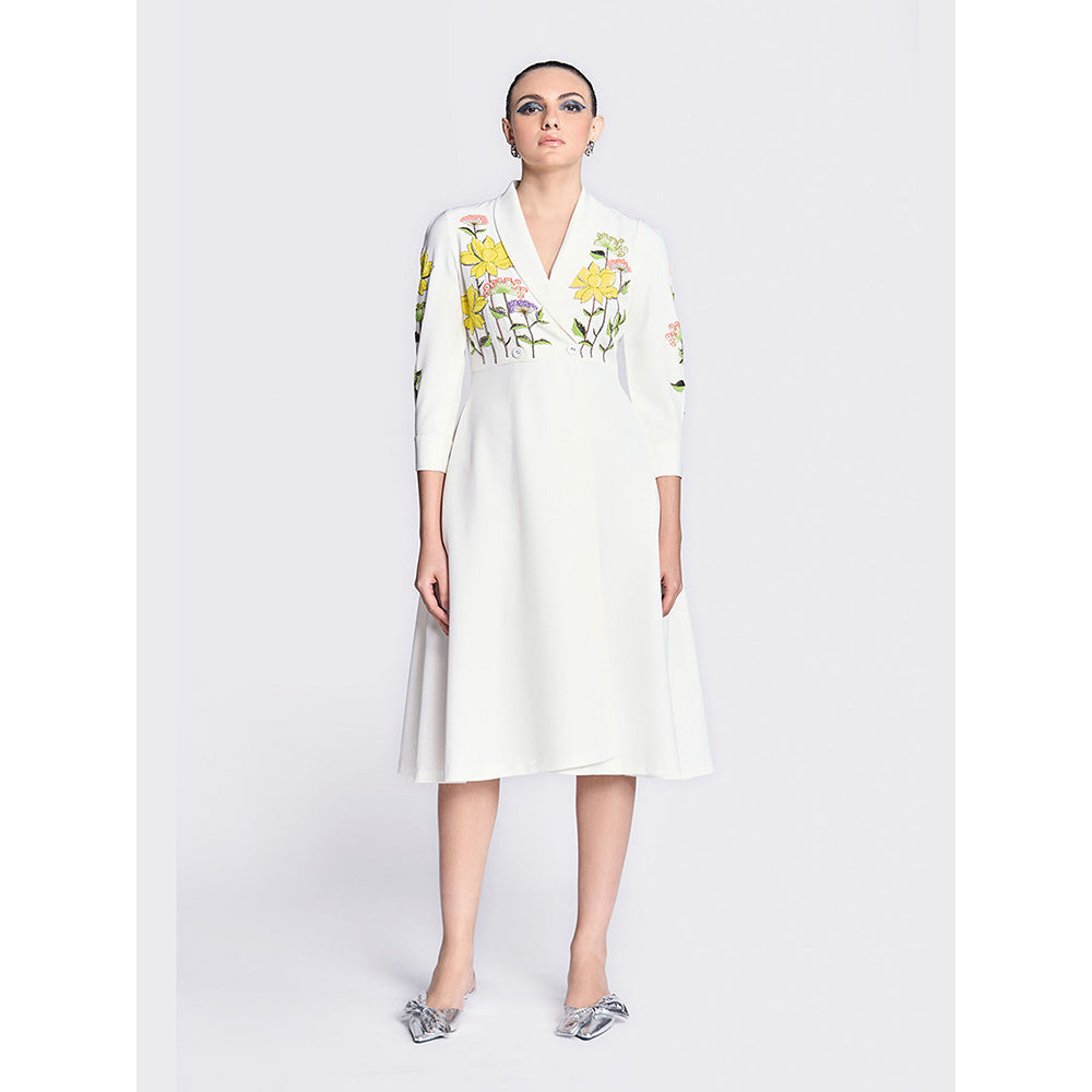 Shahin Mannan Colourful Lotus Wrap White Dress
