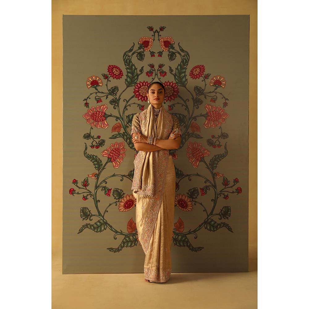 Sheetal Batra Zeenat Gold Saree with Stitched Blouse