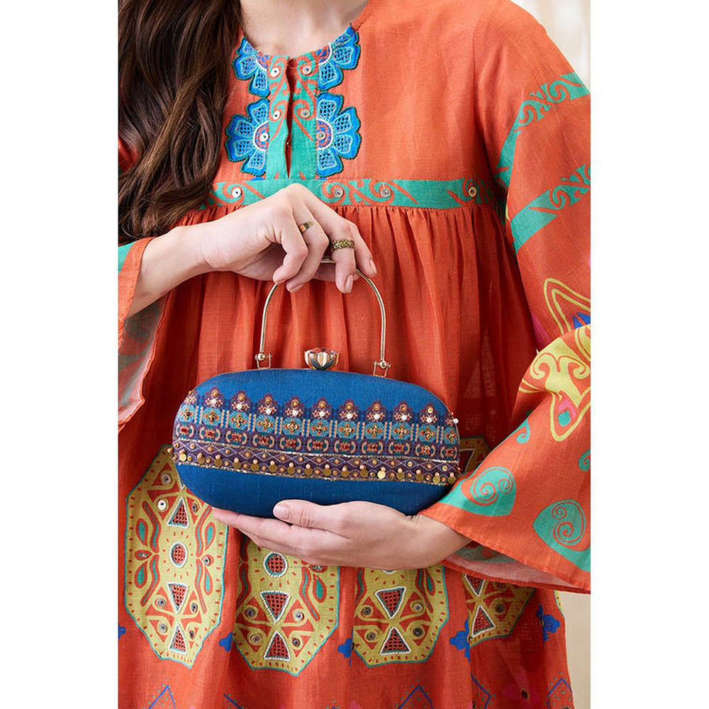 Description : Elevate your everyday style with this blue clutch from Soup by Sougat Paul. Crafted from silk, this stylish accessory offers the perfect blend of functionality and fashion for any occasion.