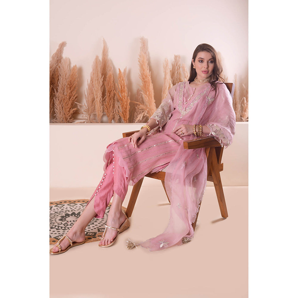 SURABHI ARYA Peony Pink Bliss Kurta with Pant and Dupatta