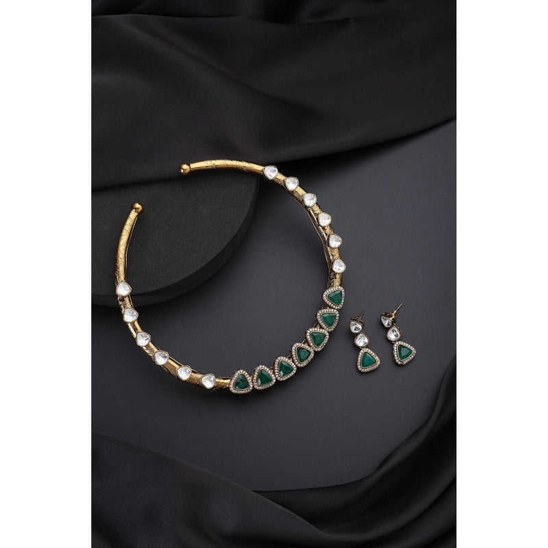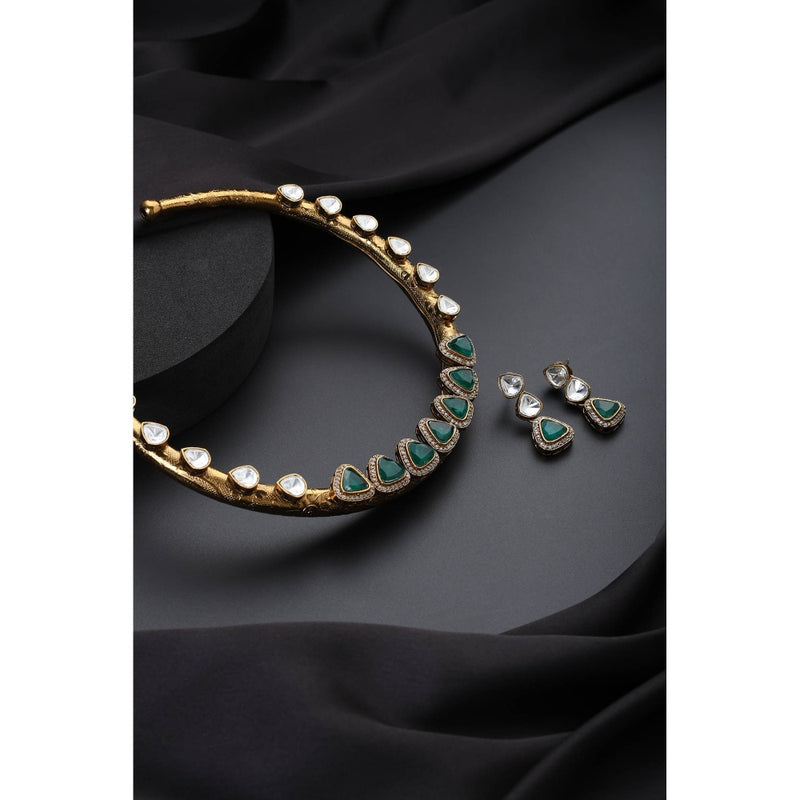 SWABHIMANN Green Polki Hasli Necklace with Earrings