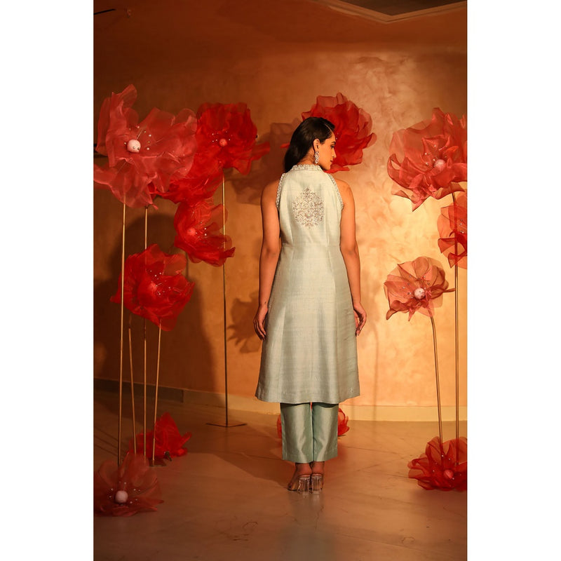 SWATHI VELDANDI Calming Ice blue Embroided Kurta with Pant (Set of 2)